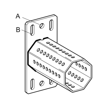 Différentes méthodes d'installation peuvent être envisagées en fonction de la structure à réaliser: a) Connexion avec les profils F 100 et F 80 à l'aide de 4 vis auto-formeuses FLS F. b) Montage (trou A) sur rails inserts par le biais de doubles-écrous ou d'écrous-rails et boulonnerie appropriés. Le profil TP F 80/80 ou TP F 100/100 à monter sur la platine STA F 100 se fixe à l’aide de 4 vis autoformeuses FLS F. Installer 2 vis FLS F par côté sur deux faces opposées.