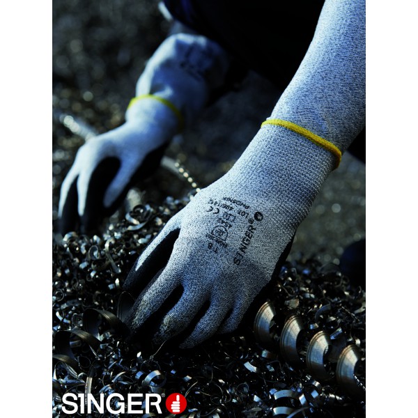 Indice coupure niveau 5 Support polyéthilène haute densité. Jauge 13. Enduction nitrile mousse sur la paume. Dos aéré. Poignet tricot élastique.