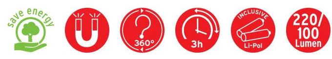 - 4 LED SMD très claires en façade avec une autonomie de plus de 3 heures avec batterie pleine charge.