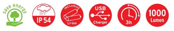 - 2 modes d'éclairage : 100 % et 50 % (pour une durée d'éclairage plus longue).
