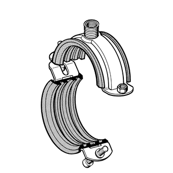 De 14 jusqu'à 115 mm: modèle articulé avec écrous soudés sur les oreilles pour vis de serrage. La vis de serrage est prémontée côté articulation, elle est engagée de l'autre côté et maintenue par une rondelle plastique.