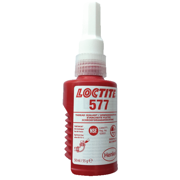 Résistance moyenne, produit d'étanchéité filetée à usage général pour les raccords droit/droit ou conique/droit. Il remplit les jeux entre les filetages, étanche et les freine en même temps. LOCTITE 577 est conçu pour le freinage et l'étanchéité des tubes et raccords filetés métalliques, ainsi que d'autres assemblages filetés. Le produit assure une étanchéité instantanément à basse pression pour les tubes et raccords métalliques. Il ne se desserre pas, n'a pas de retrait et ne se fissure pas. Il a une excellente résistance chimique et thermique et évite la migration dans le fluide après application sur la pièce. NOUVEAU : Henkel a récemment amélioré la formulation du produit LOCTITE 577 offrant une :