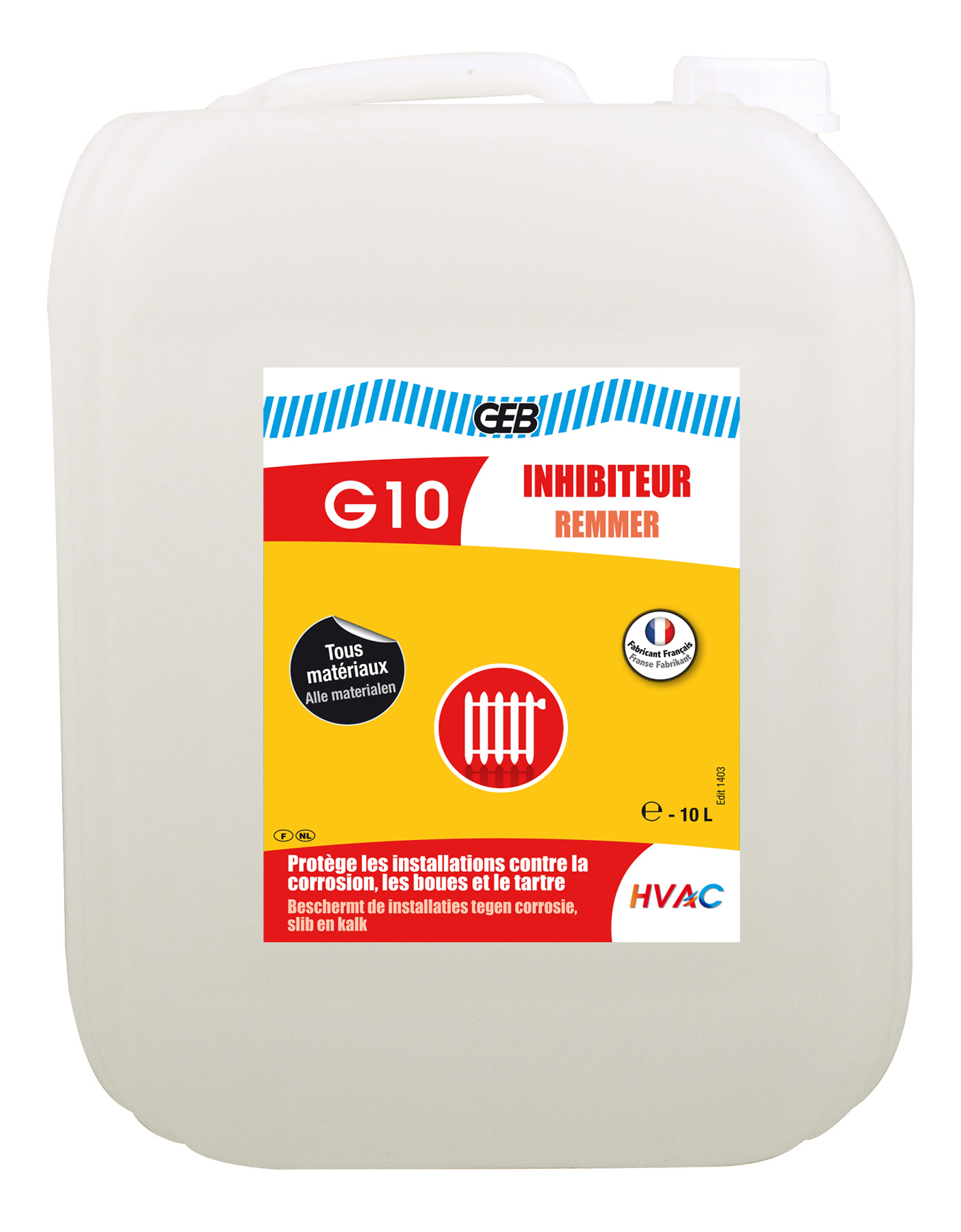 Le G10 INHIBITEUR est un produit anti-corrosion et anti-tartre destiné à la protection des circuits fermés de chauffage central remplis avec de l’eau non adoucie.
