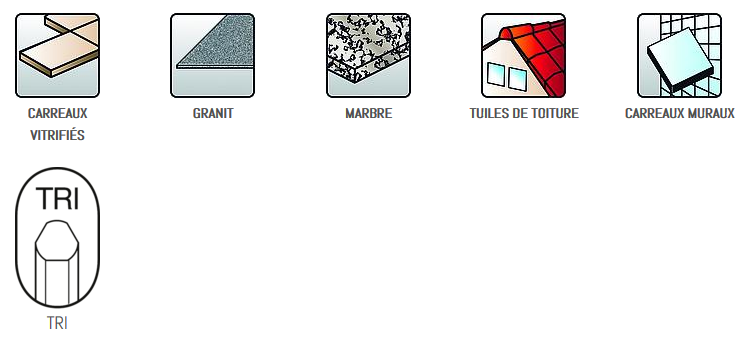 - Résultats parfaits dans les carrelages, les tuiles et les pierres naturelles les plus durs