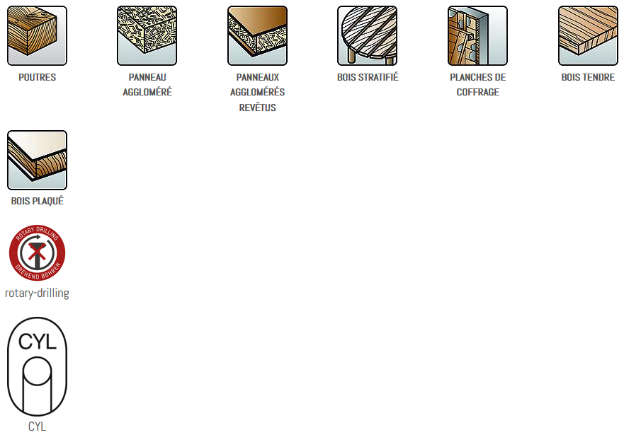Perçage et extraction des copeaux extrêmement rapides dans tous les types de bois. Précis et fiable dans la durée y compris dans les bois les plus nobles