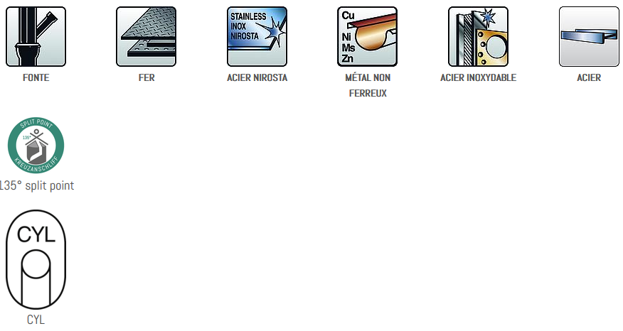 Un affûtage en croix et un angle à 135° ainsi qu’une excellente précision d'usinage caractérisent ce foret et assurent un positionnement parfait