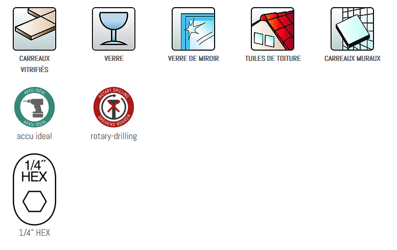 - Pour une utilisation de perçage par rotation dans le verre et les matériaux en céramiques tendres