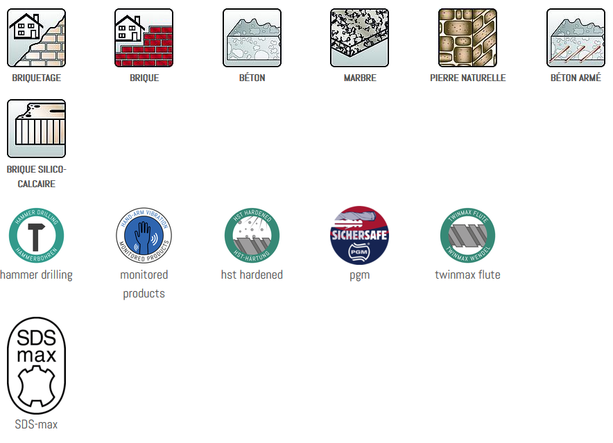 - Avec tête en métal dur incorporée pour une résistance extrême dans l'armature et une avance de percage puissante